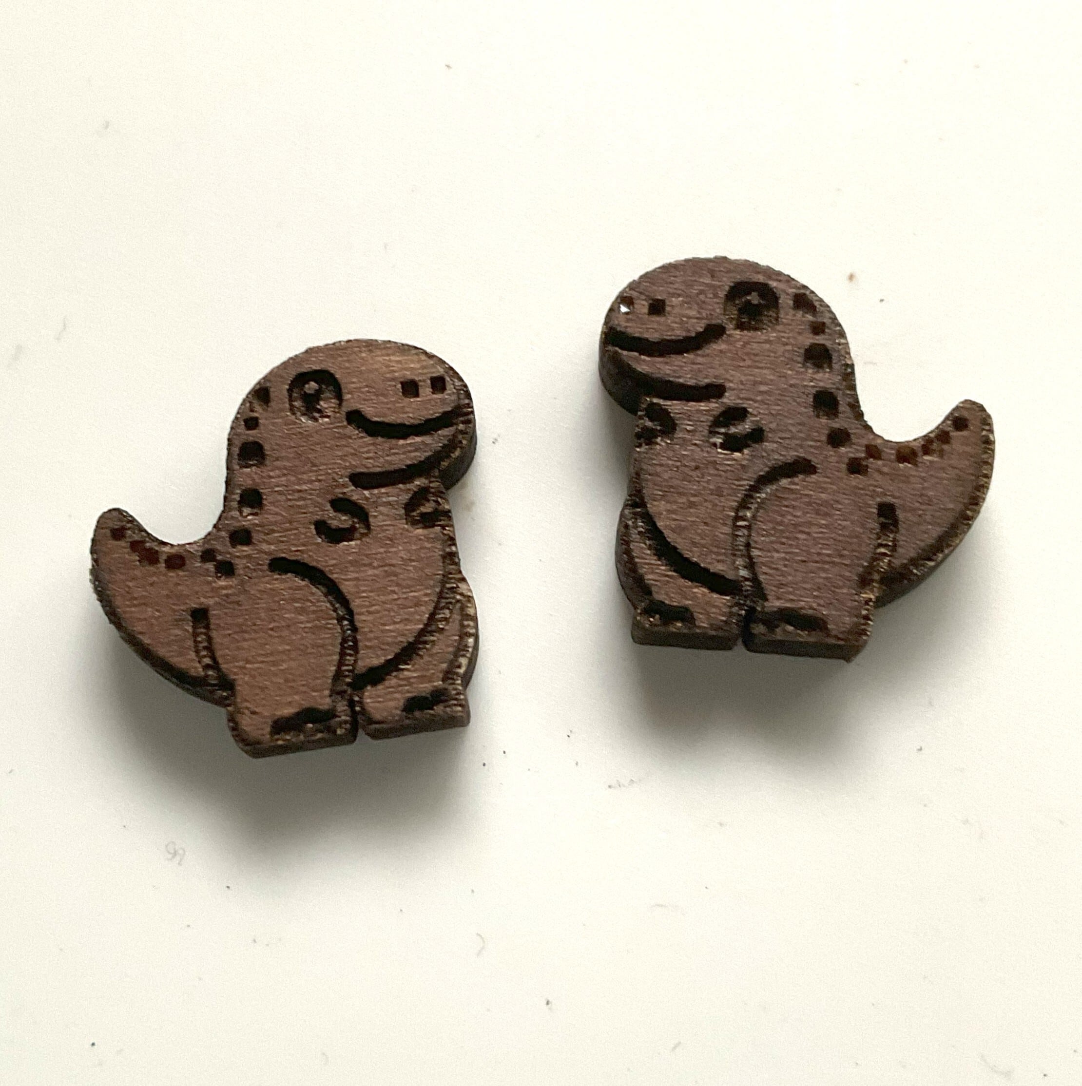 木製ならではの素朴さと、ティラノサウルスのキュートなシルエットが魅力のイヤリング。