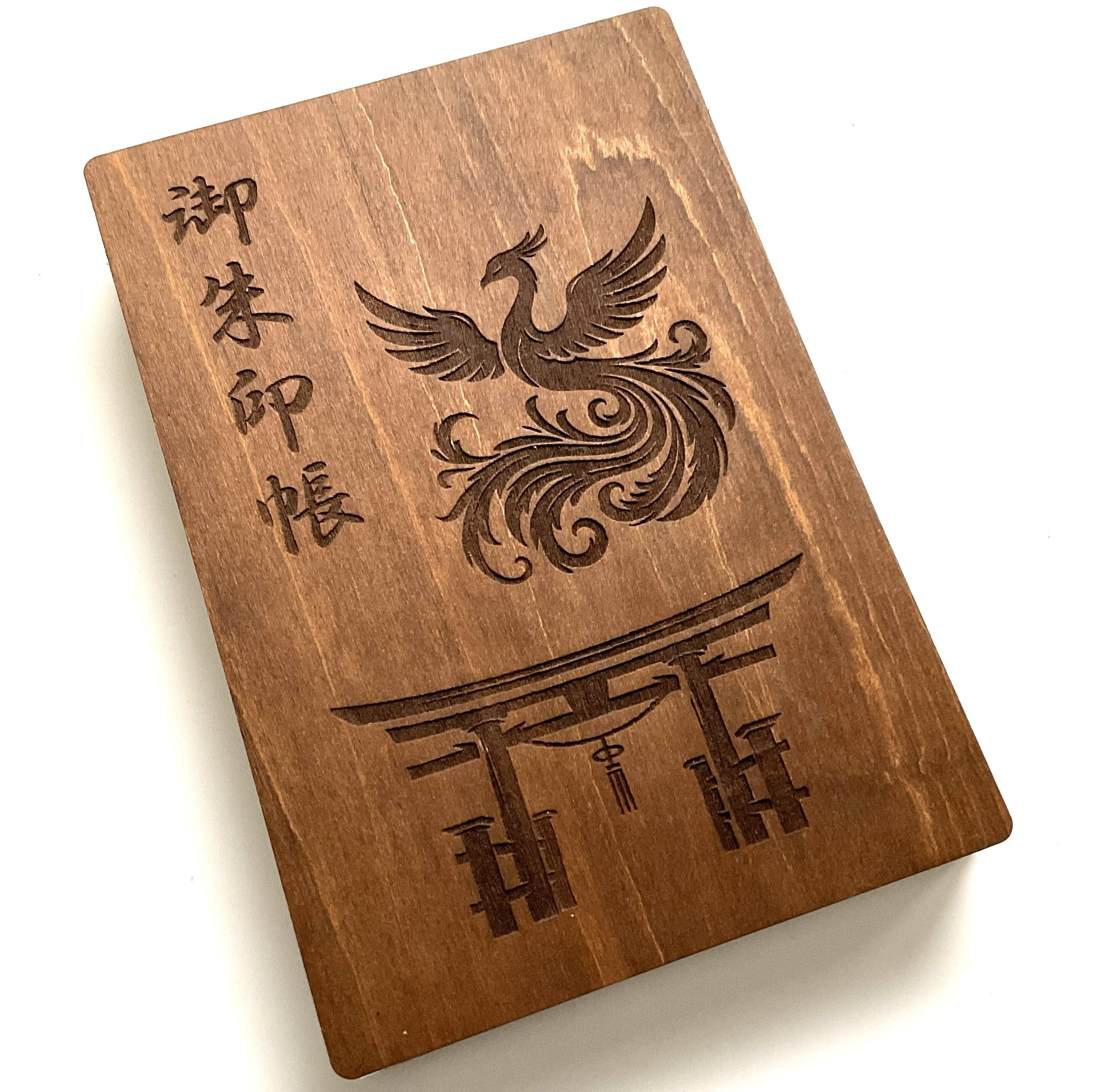 【木製御朱印帳:鳳凰と鳥居】oakカラー 小判