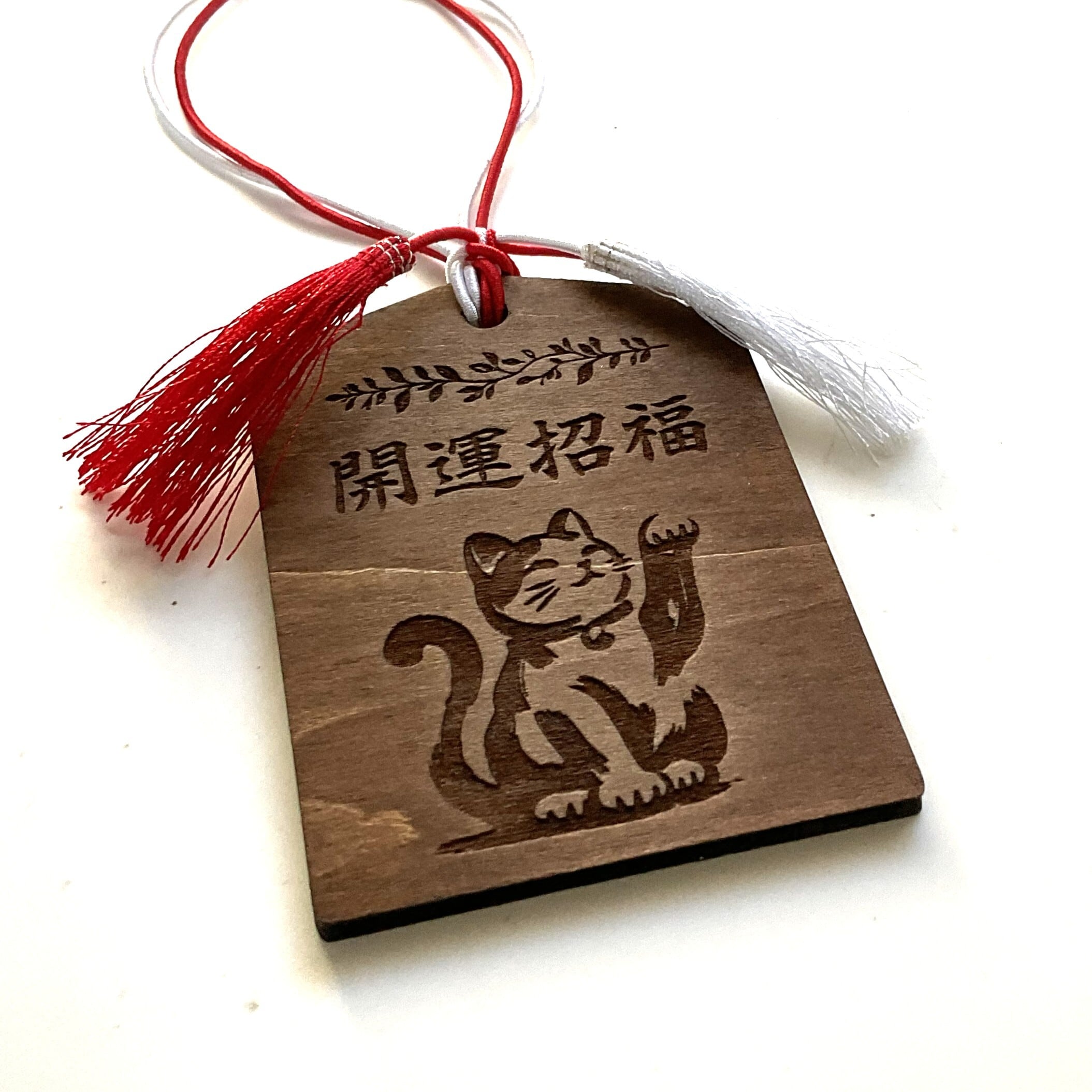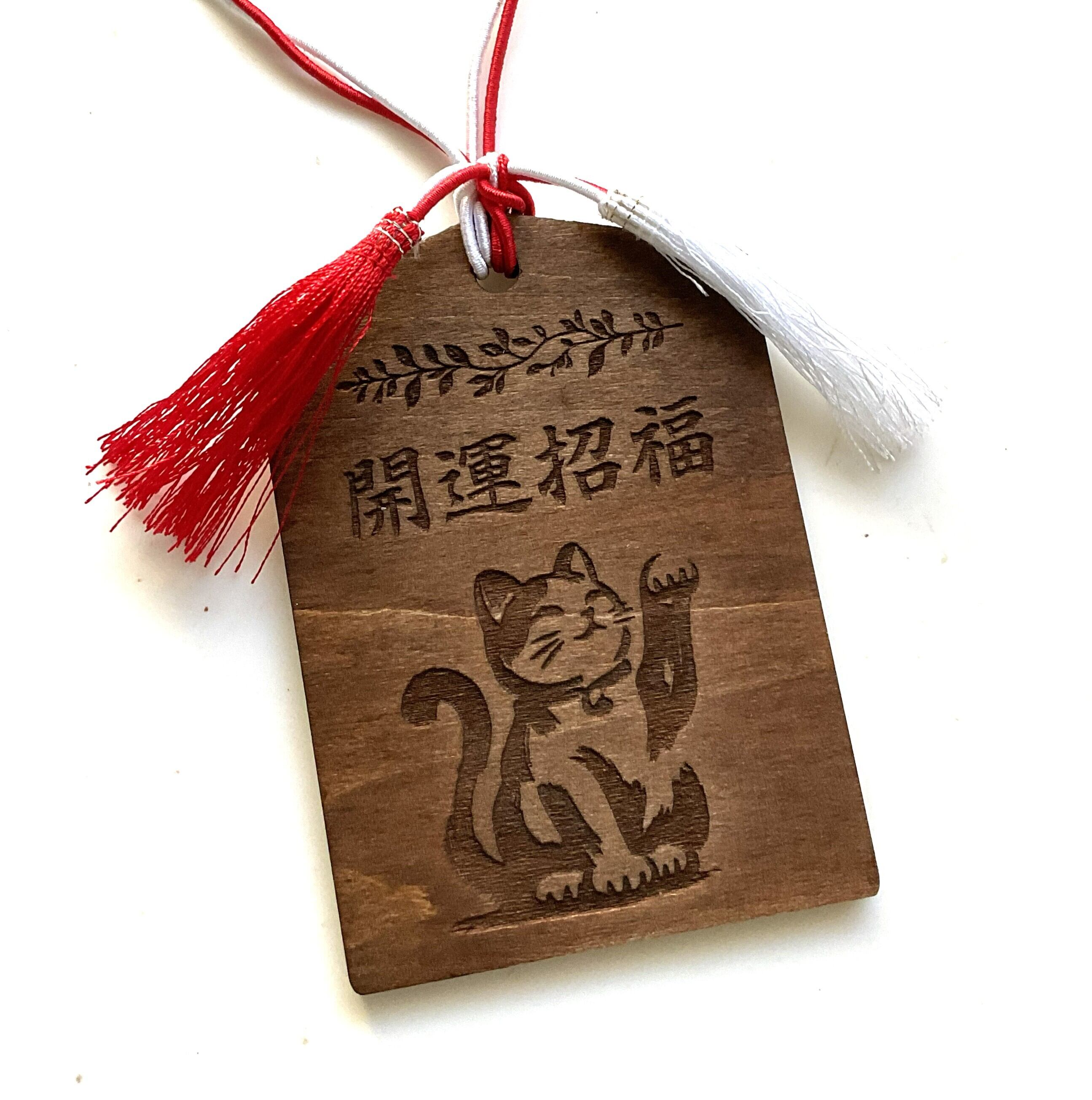 オリジナルデザイン「招き猫」のモチーフが描かれた木製お守りです。