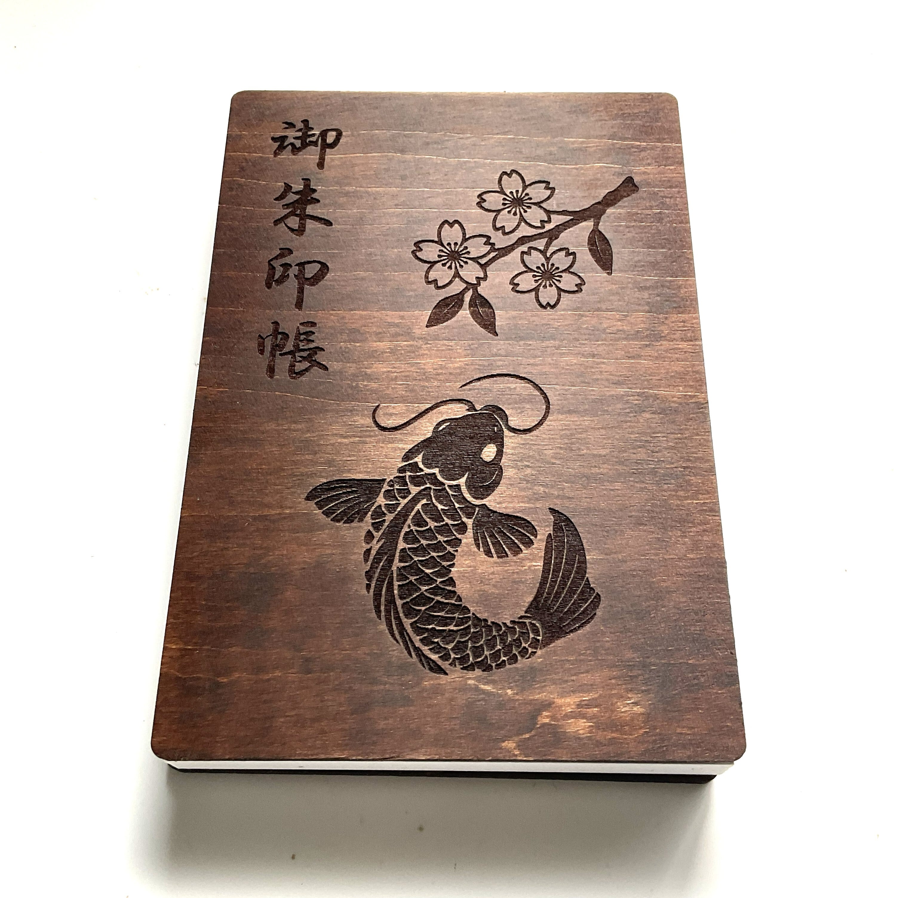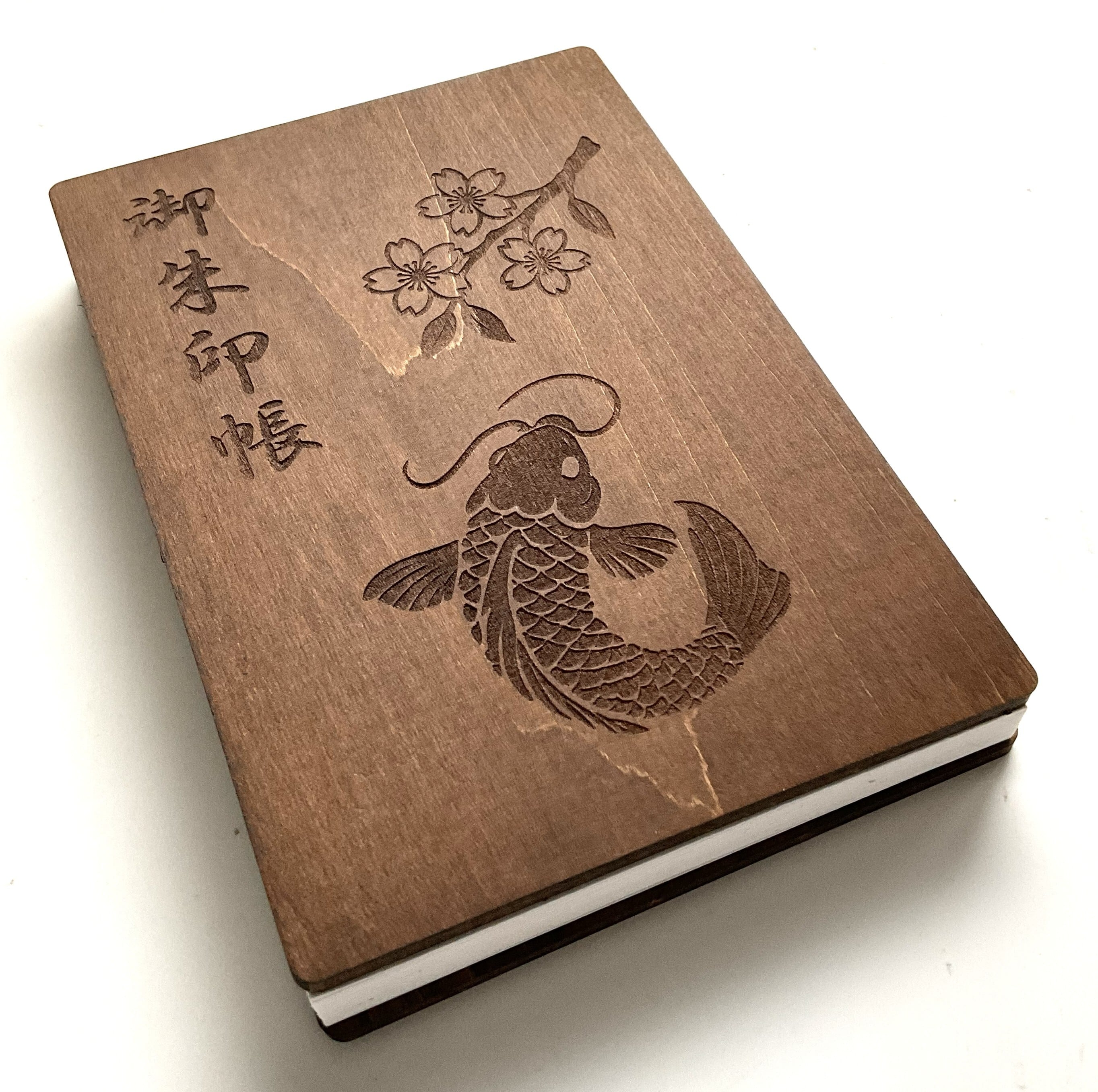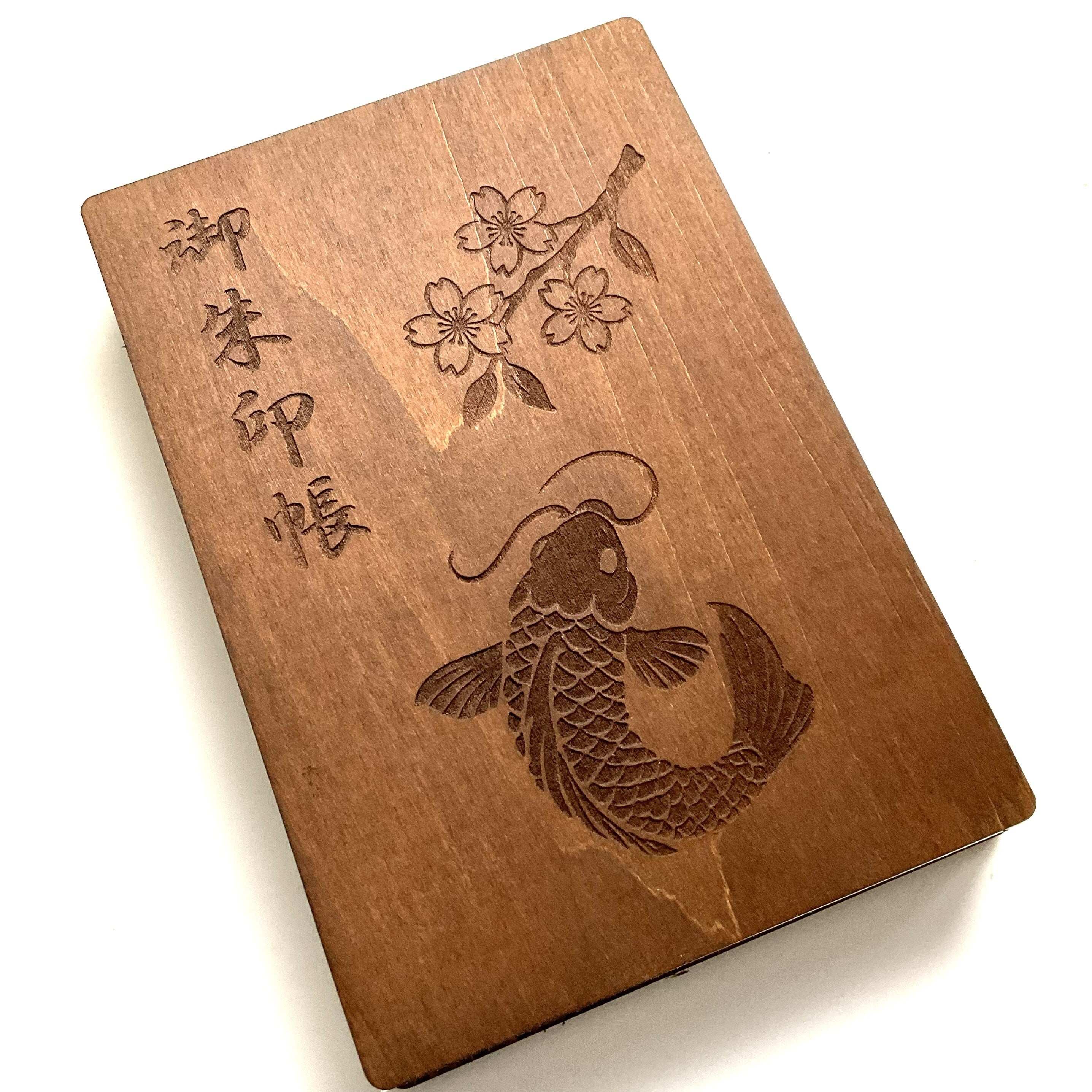 【木製御朱印帳:鯉と桜】oakカラー 小判