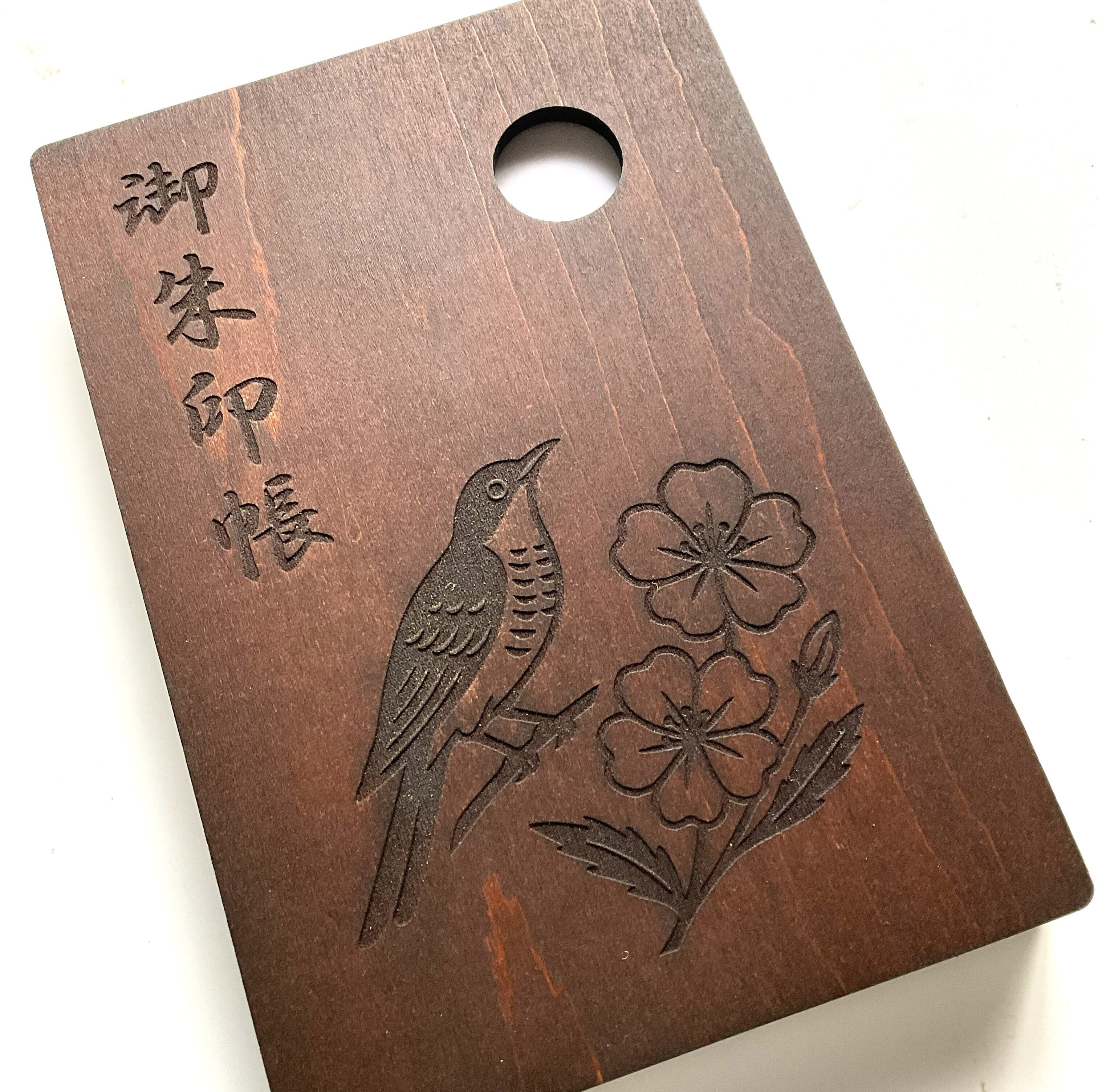 【木製御朱印帳:ホトトギスと月見草】oakカラー 小判
