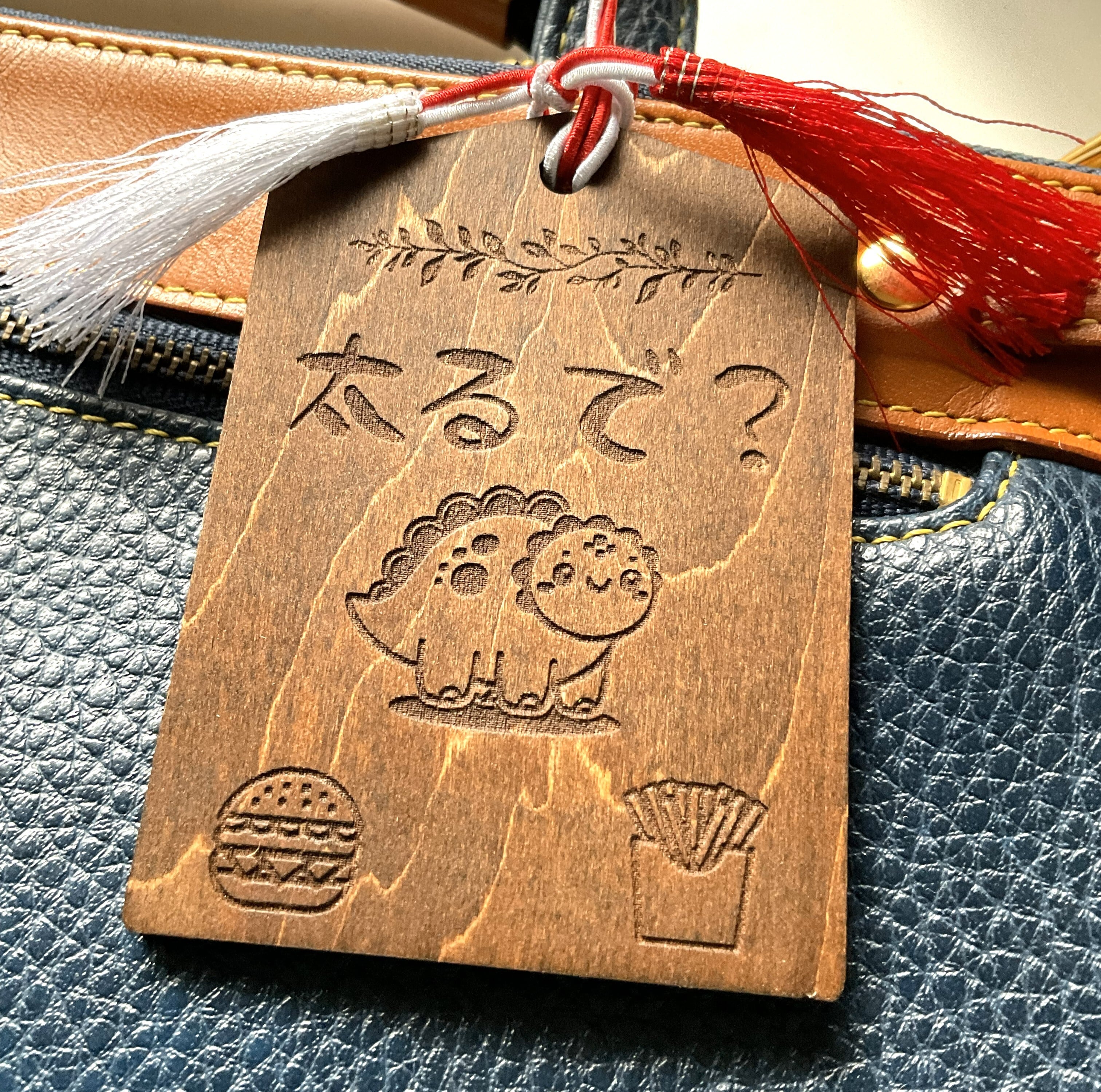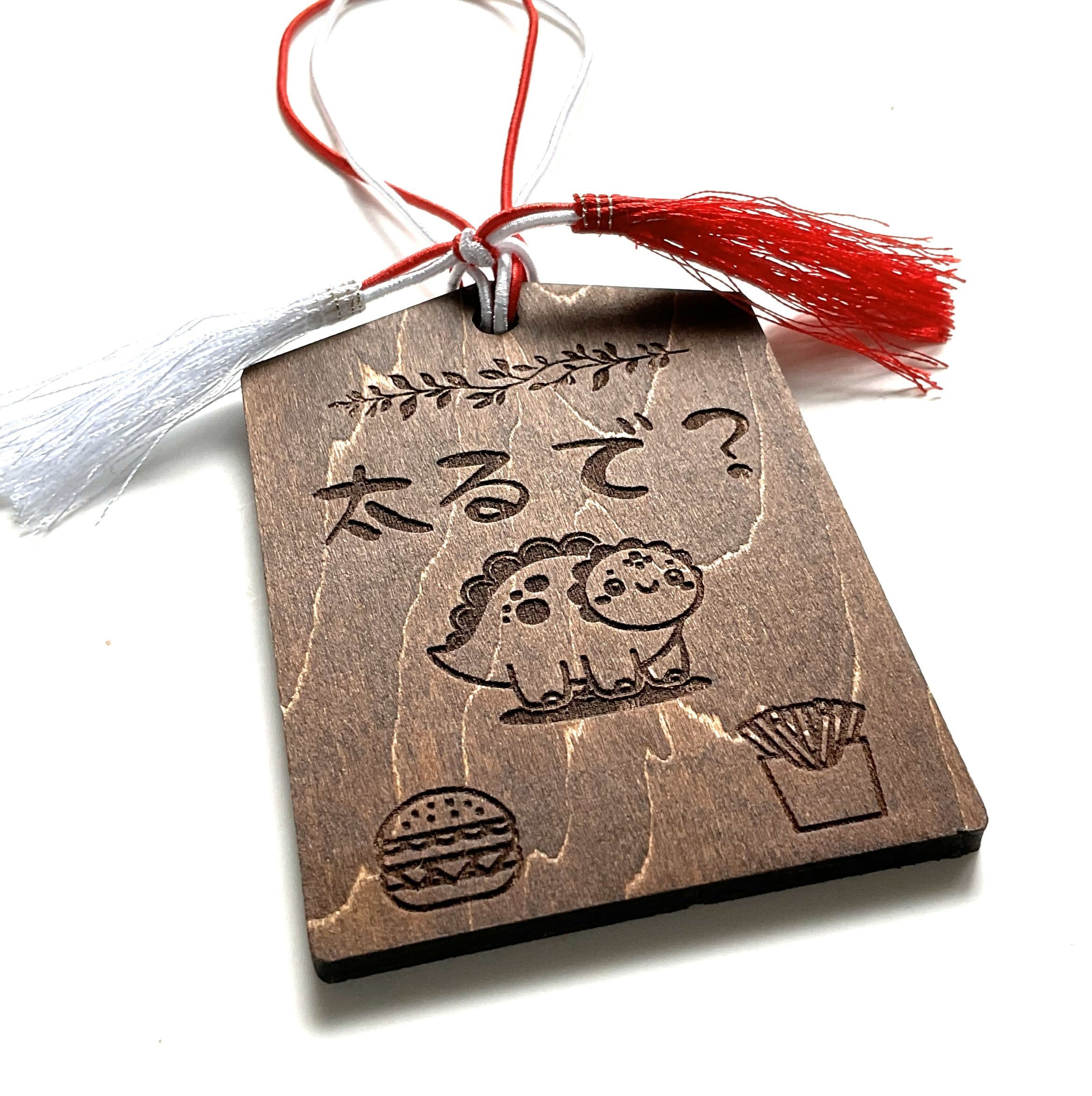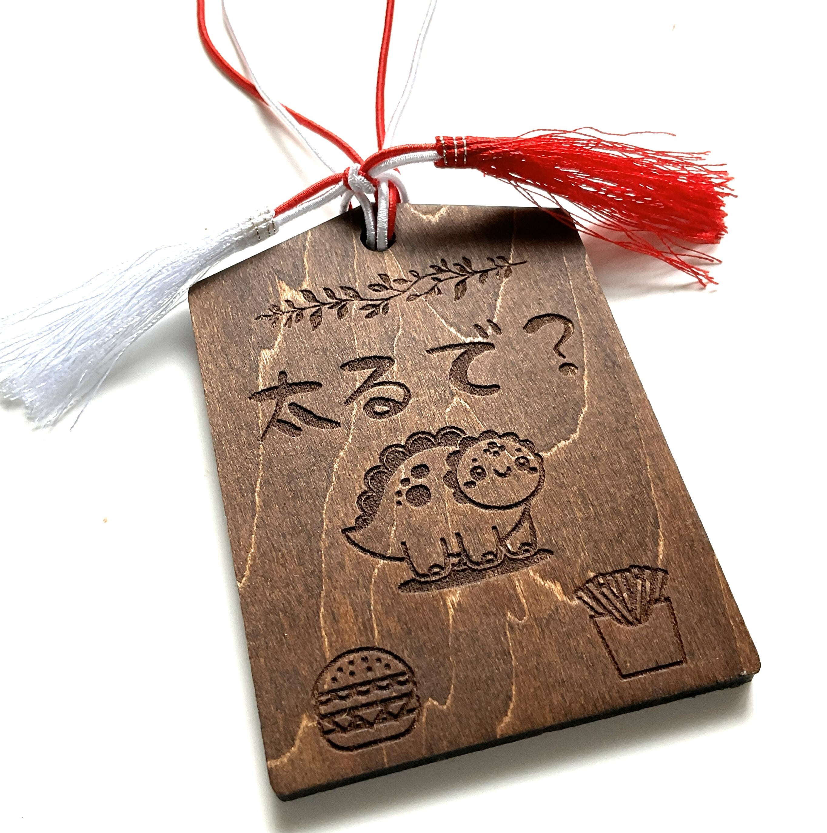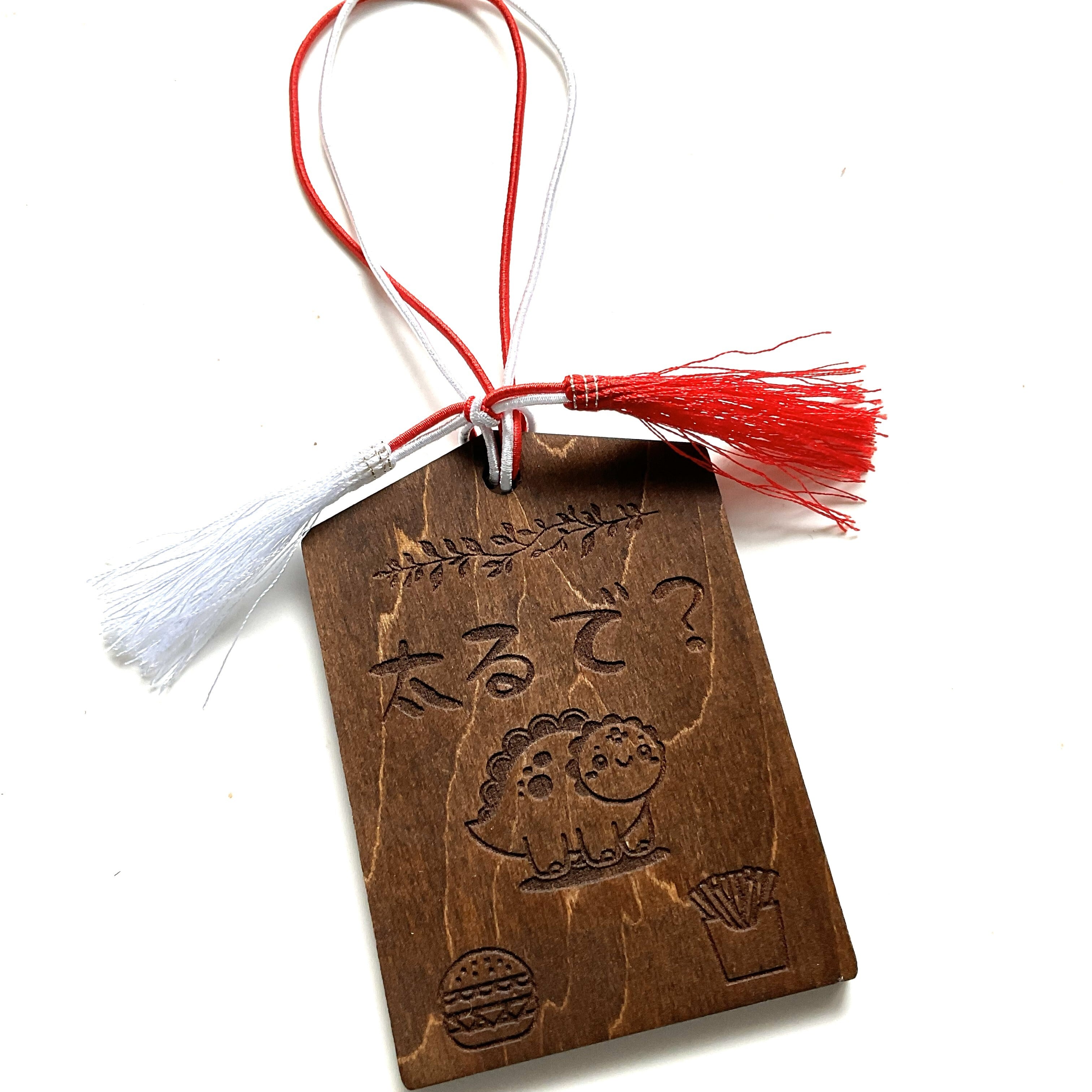 ダイエットの木製お守り【太るで】oakカラー 厚さ4mm