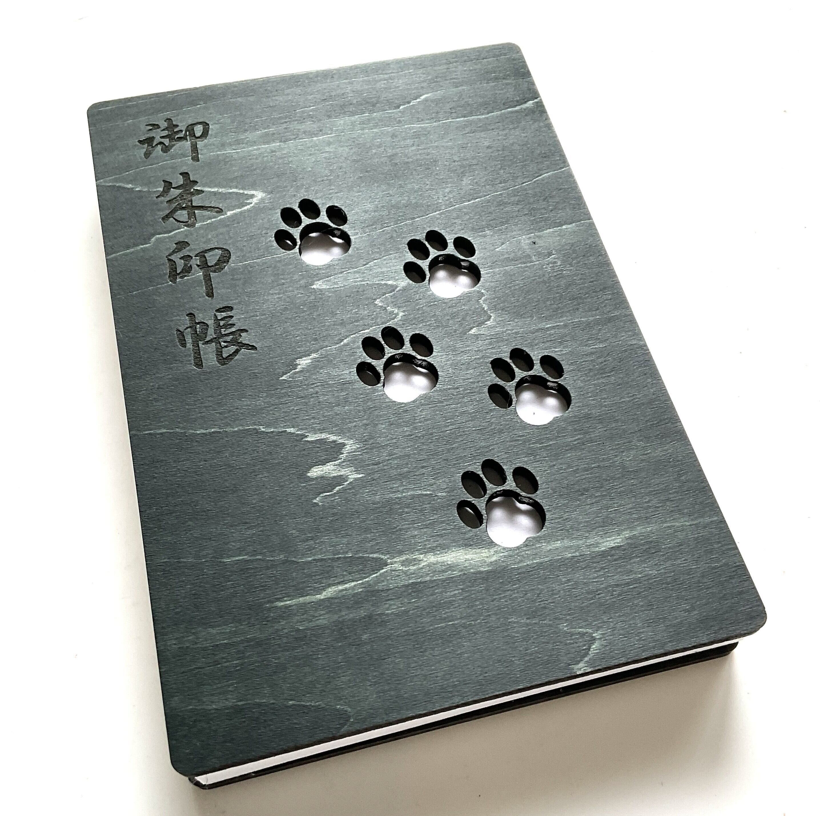 動物の肉球や足跡をイメージしたデザインを施したオリジナルの木製の御朱印帳になります。