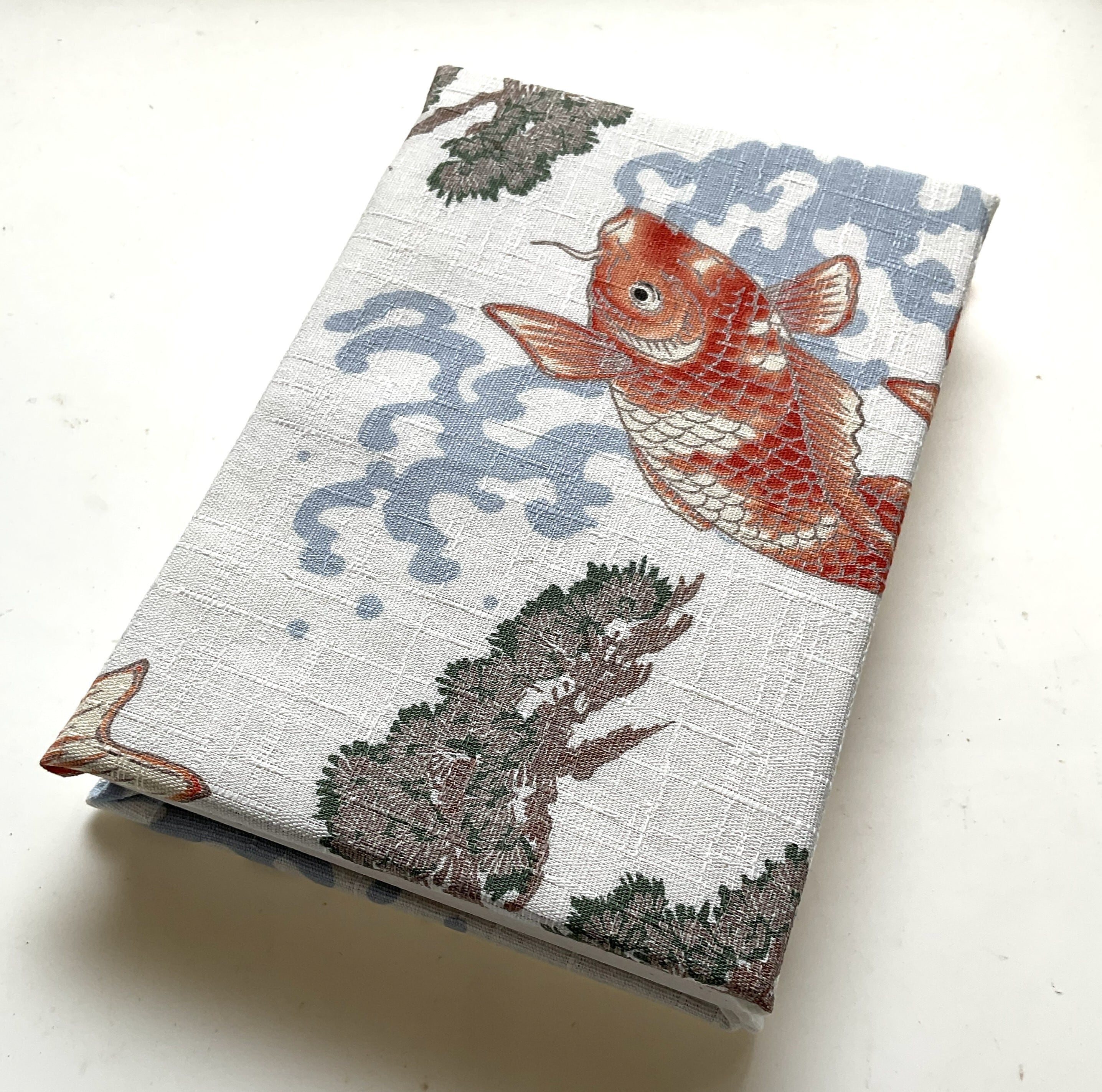 鯉のモチーフ生地を使った木製御朱印帳です。